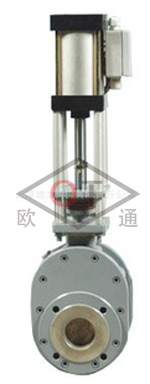 當(dāng)氣源從上進(jìn)氣口通入時(shí),氣缸桿帶動(dòng)閥板向下運(yùn)動(dòng),閥門關(guān)閉。當(dāng)氣源從下進(jìn)氣口通入時(shí)話,氣缸桿帶動(dòng)閥板向上運(yùn)動(dòng),閥門開(kāi)啟。閥板有密封環(huán)之間加載彈簧,彈簧力始終使閥板壓向密封環(huán),又容許閥板在垂直上下方向移動(dòng),這有助于補(bǔ)償閥門零件的熱脹冷縮,并能克服任何背壓變化對(duì)密封的影響與防止顆粒介質(zhì)進(jìn)入兩密封面之間。在啟閉過(guò)程中,閥板能產(chǎn)生自轉(zhuǎn),使得密封面之間產(chǎn)生研磨、拋光作用,而且由于閥體對(duì)通道偏心,在開(kāi)啟排卸物料時(shí),會(huì)產(chǎn)生渦流,形成的物料旋渦會(huì)自行清掃閥門內(nèi)腔。所有的這些特點(diǎn),使得這種閥門具有超長(zhǎng)的使用壽命,為您的系統(tǒng)安全運(yùn)行提供了可靠的保證。